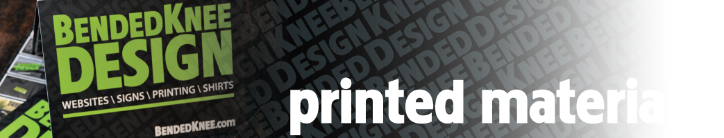 Bended Knee Design is an excellent source for high quality cost effective printing of spot color, digital, offset, and large format products. We take the time to talk with you about the purpose and end goal of whatever it is you're looking to print. With so many options out there we have the experience to help you match the right product to the right job. Not only that but we can offer suggestions along the way in regard to the relevance of your printed content. Let us produce a professional selection of business cards, postcards, mailings and more for you today!